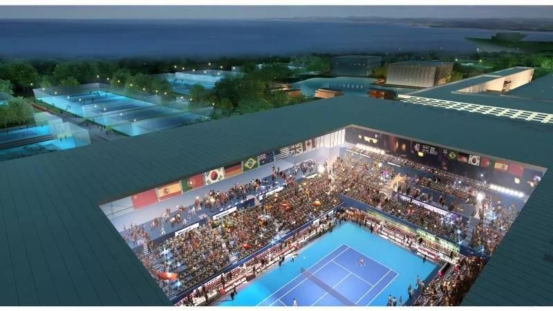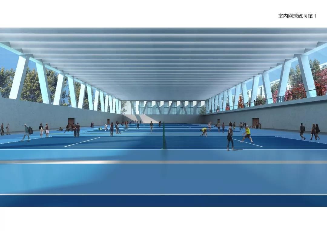 主要建設(shè)中心賽場(chǎng),室內(nèi)網(wǎng)球練習(xí)館(含常規(guī)場(chǎng)地、網(wǎng)球中心配套用房、VIP室內(nèi)場(chǎng)地及其配套服務(wù)用房、學(xué)員公寓)單跨跨度約42米,室內(nèi)網(wǎng)球練習(xí)館(紅土場(chǎng)地),籃球館,教員公寓,室外網(wǎng)球比賽場(chǎng),室外網(wǎng)球練習(xí)場(chǎng)及地下停車場(chǎng)。