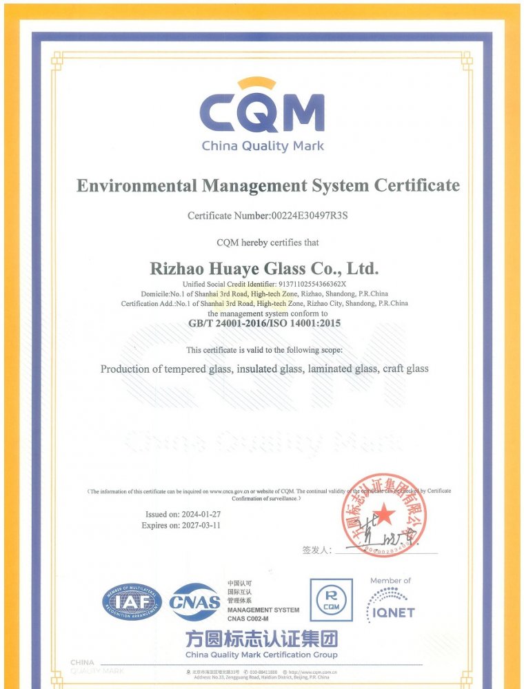 環境管理體系認證證書
