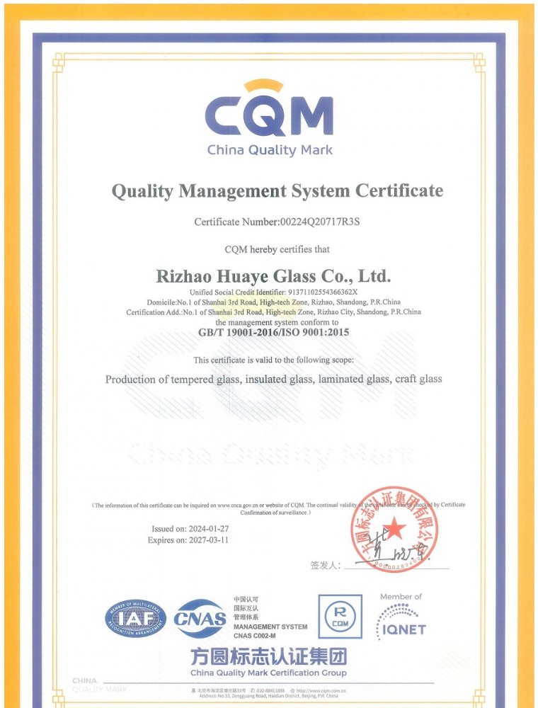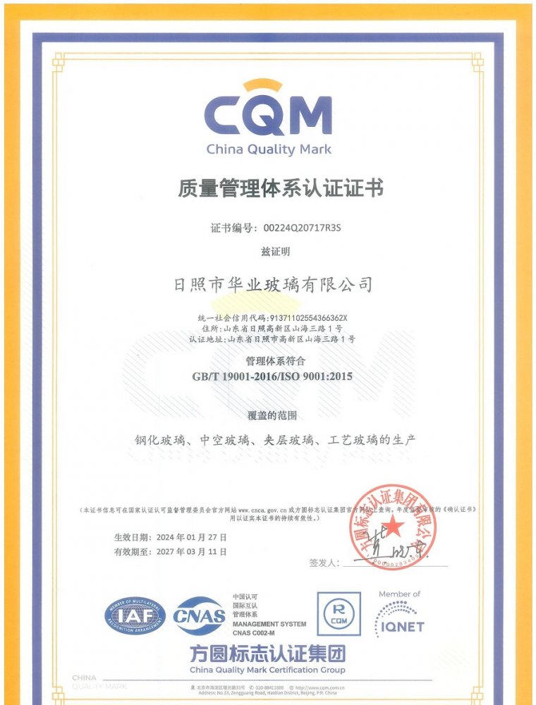 質量管理體系認證證書