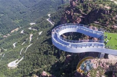 2018年6月12日,河南省新密市,經過8個月的建設,伏羲山旅游區的懸空玻璃環廊正式落成,游人走在環廊上感受“天空漫步”的刺激體驗。據了解,伏羲山玻璃環廊將于6月16日起對外開放,該橋采用無斜拉索設計,整體工程用鋼量超3000噸,橋面使用150塊三層鋼化夾膠玻璃鋪設,距離峽谷地面360米,環廊伸出懸崖30米。比美國科羅拉多大峽谷號稱“世界第八大奇跡”的玻璃環廊還長出近9米,可謂是“世界很長的高空玻璃環廊”。